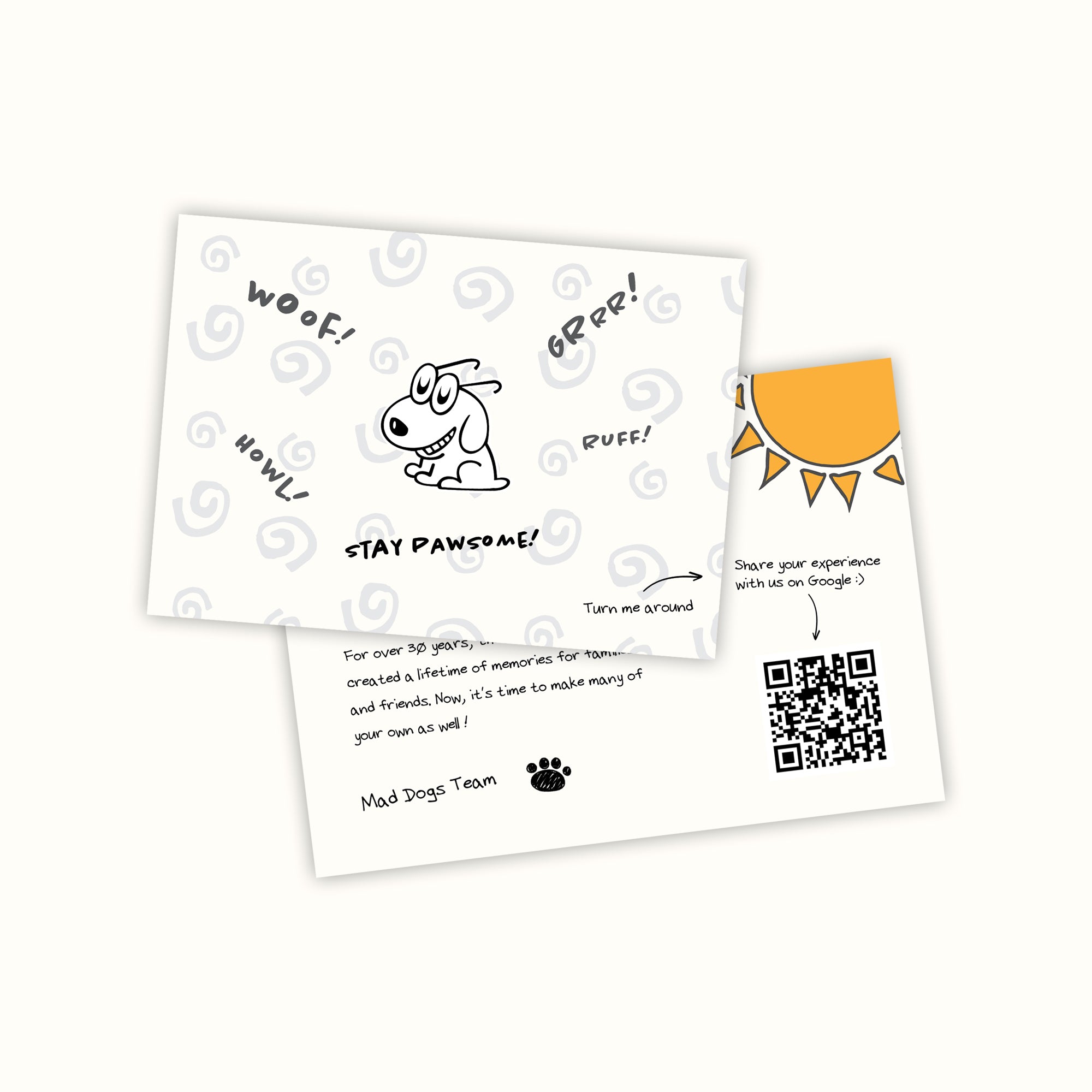 Inside the box, you will find a personal thank you note from us to show our appreciation for your support and being a member of the Mad Dogs family. This card includes a QR code so that you can share your experience with us!